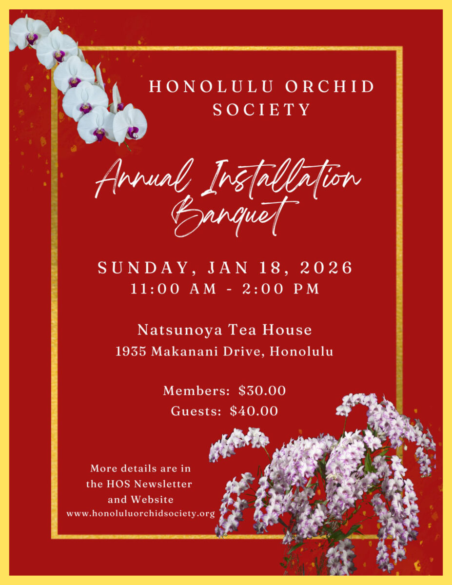 Wednesday, March 13, 2024 7:00 PM in the Lanakila Elementary School Cafeteria717 N. Kuakini Street Auction is open to the Public. Many nurseries have provided or donated unusual, large or flowering orchid plants which will be offered by either open bid or secret bid. Arrive by 7:00 PM to receive instructions, then participate in bidding….